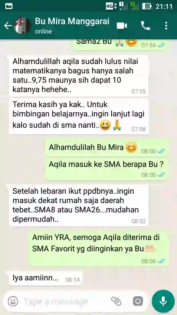 Adam les di IndoPrivat sejak kelas 12 SMA. Alhamdulillah tahun ini diterima di IPB Program Studi Silvikultur Fakultas Kehutanan.