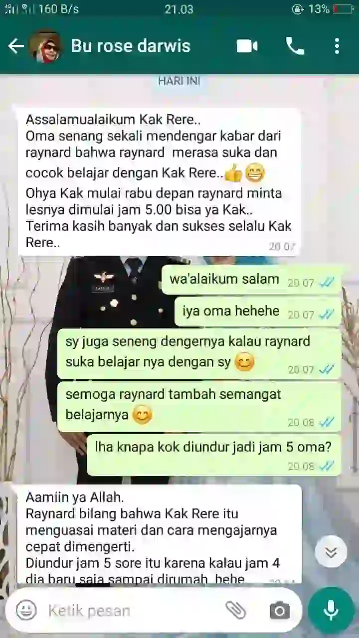 Anda boleh meminta ganti guru kapan saja hingga dapat guru yang cocok.